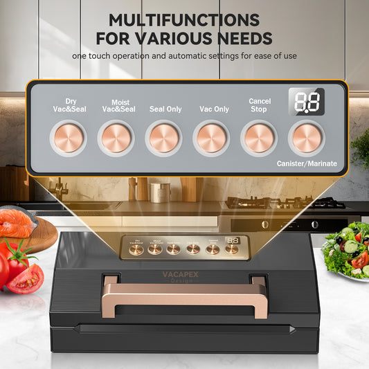 Vacuum Sealer, Stainless Steel Food Vacuum Sealer Machine with Detachable Drip Tray, Built-in Bag Storage and Cutter, Double Heat Seal, Versatile Food Preservation with Liquid/Moist/Dry Food