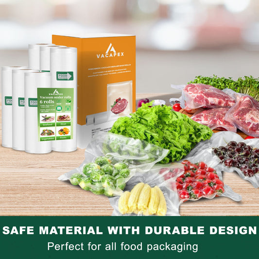 Vacuum Sealer Bags Rolls for Food, VACAPEX 6 Rolls for Custom Fit Food Storage, Meal Prep or Sous Vide, 8" x 20' (3 Rolls) and 11"x 20' (3 Rolls) Commercial Grade Vacuum Seal Freezer Bags Rolls